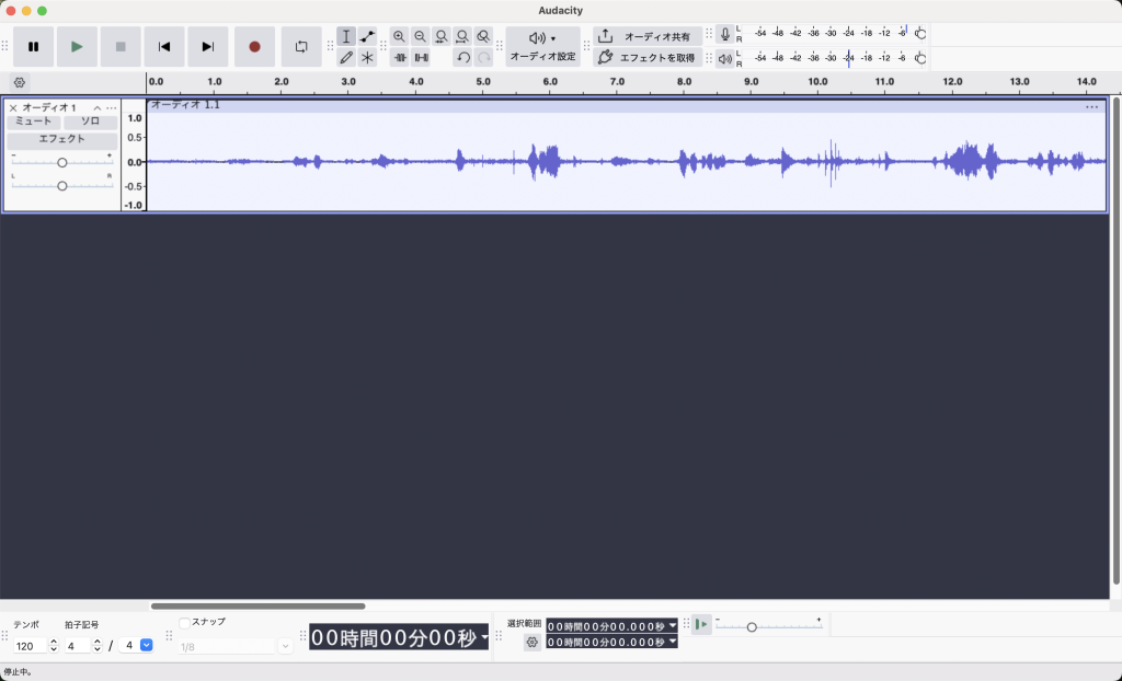 Audacity(オーディオ編集ソフト)を用いて、検証に使用する音声クリップを用意します。