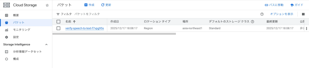 音声データをアップロードするためのCloud Storage バケットを作成します。