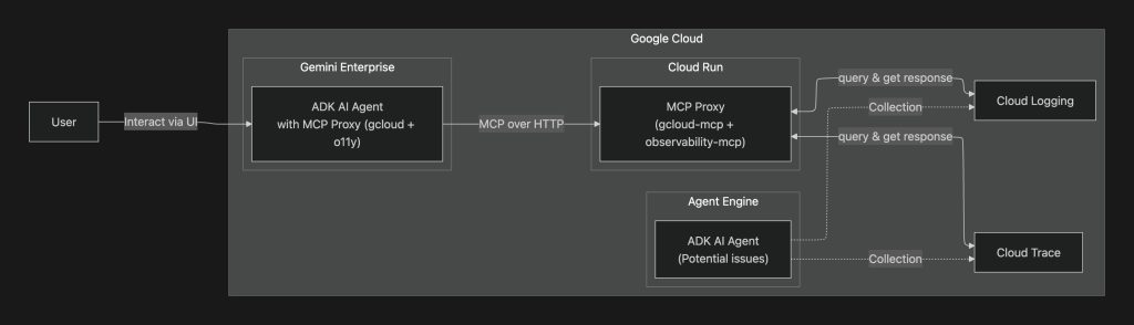 observability-mcp をAI Agentに持たせる事で、Cloud Logging / Monitoring / Trace / Error Reporting といった情報を、AI Agentが直接操作・取得 できるようになります。