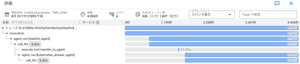 | ロギングの場所 | Agent Engineの前段コンポーネント | Agent本体 |