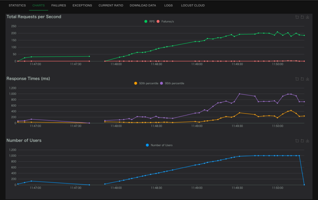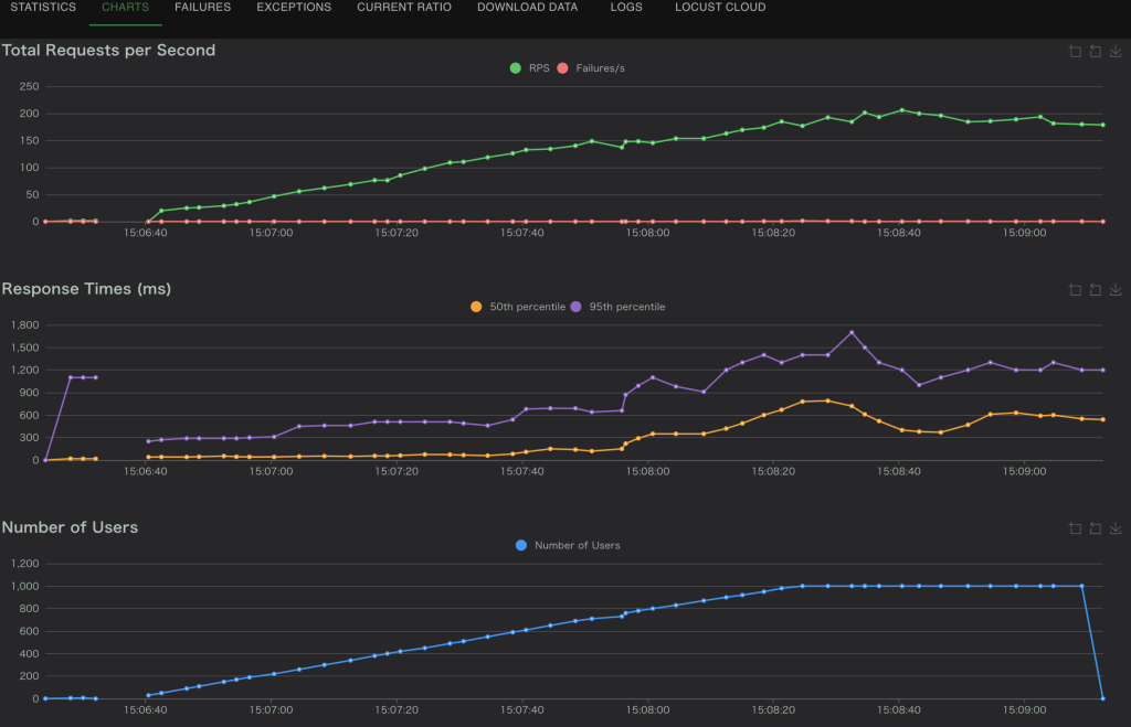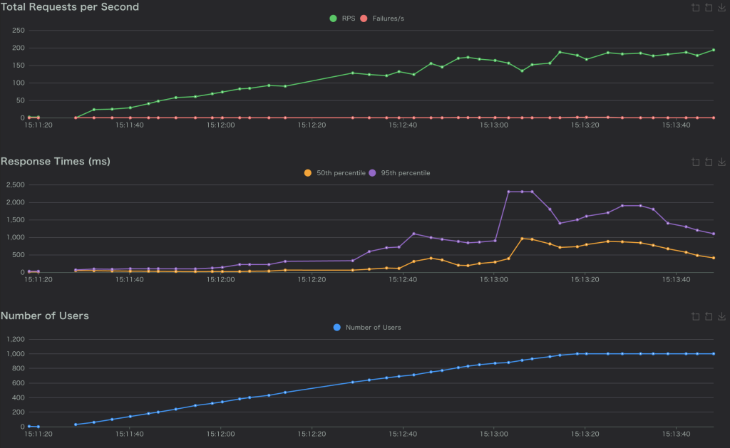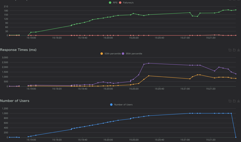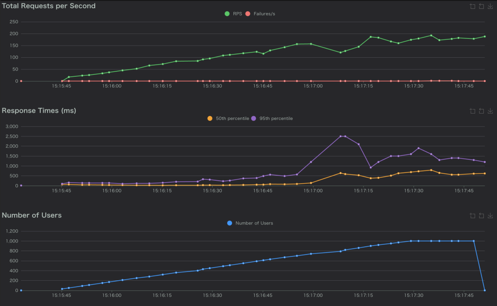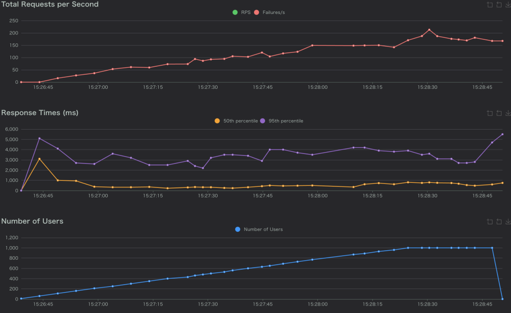 • Response Time(P95): 1500ms-2500msに平均的に数値が大きくなった。