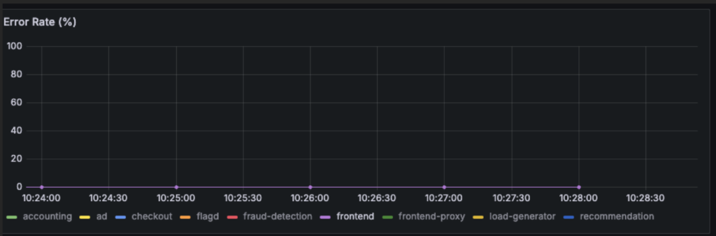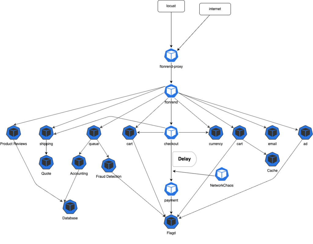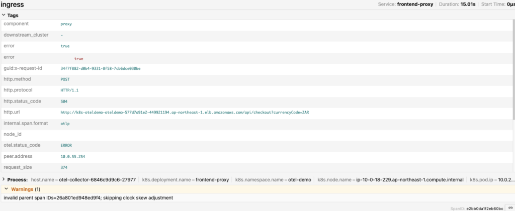 追加実験で、30s,40sの遅延を入れたが、frontend-proxyでしかエラーが確認できませんでした。