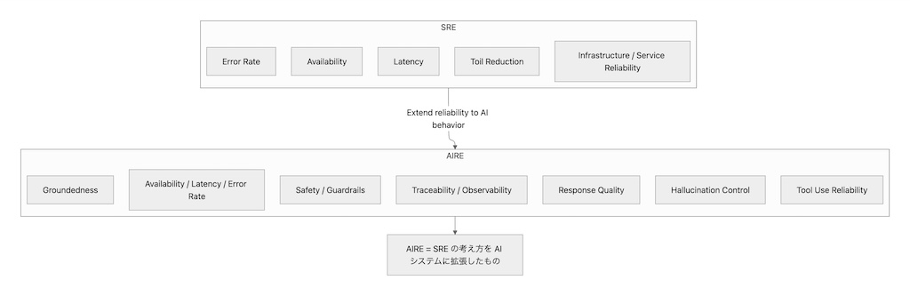 AIRE は SRE の考え方を AI に拡張したものと捉えると理解しやすいでしょう。すなわち、