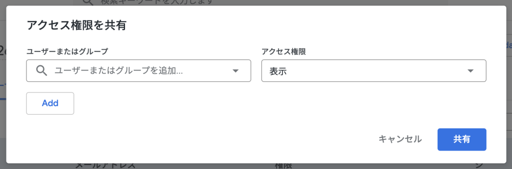 そのため、他のユーザーにも共有したい場合は、作成したセルフサービスExploreの編集画面から閲覧させたいユーザーを追加する必要があります。