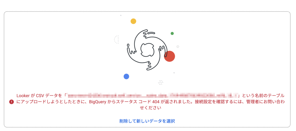 ファイルのアップロードに失敗すると次のような画面が出ます。