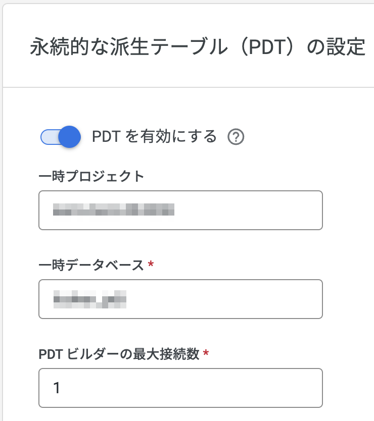 - 「編集」から「永続的な派生テーブル(PDT)」を有効にして「保存」