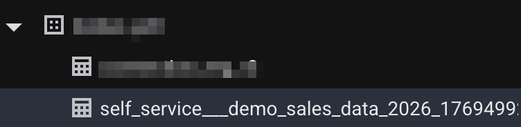 セルフサービスExplore機能を利用してアップロードされたファイルは、設定で指定されたBigQueryデータセットにテーブルとして追加されます。